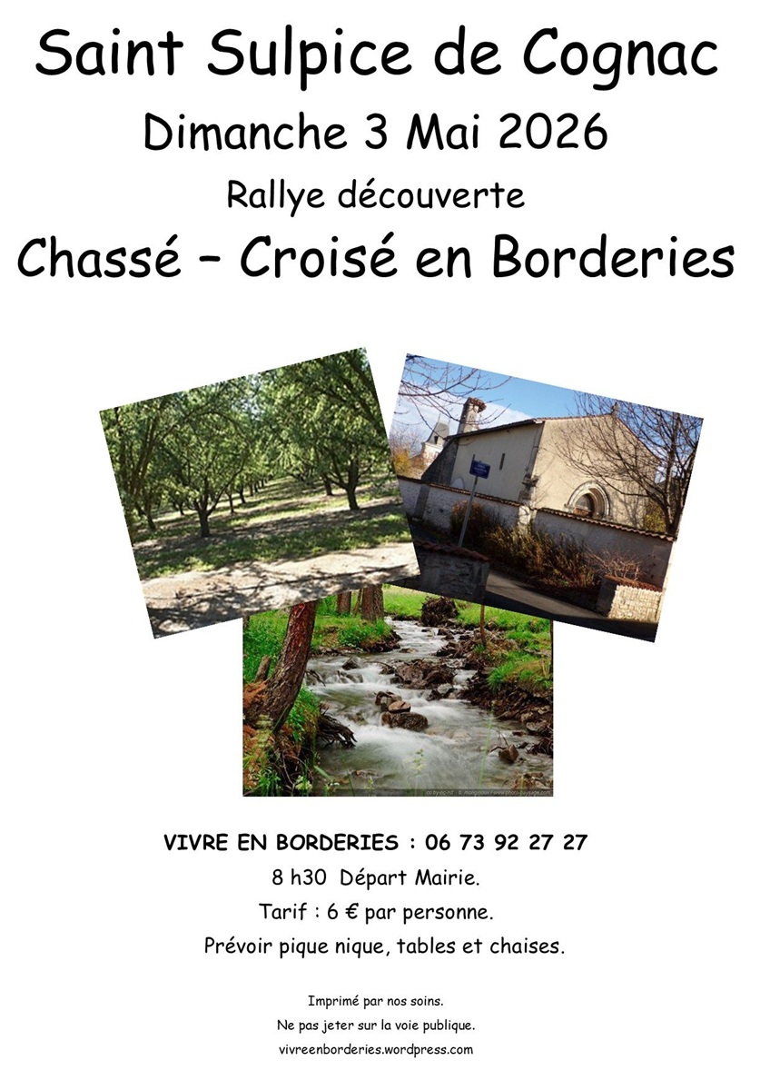 | Médiathèque Municipale : Du 10/03 au 24/04 Grainothèque à la médiathèque du bourg de Cherves-Richemont Échange continu de semences hors du système marchand (basé sur le troc) Détails Institut Richemont |OF-CFA| des Charentes : Le 14/03 de 09h à 18h Portes ouvertes Institut de Richemont Détails Médiathèque Municipale : Le 18/03 à 16h30 L’arbre à contes (jusqu'à 5 ans) à la médiathèque du bourg de Cherves « Tous au car,naval» Gratuit Détails L'Abaca : Le 21/03 à 20h30 Raconte moi la Traviata à L'Abaca Détails Gymnastique volontaire de Saint Sulpice de Cognac : Le 29/03 de 07h à 19h 36ème BROCANTE à la salle des fêtes du bourg de St Sulpice 2,5€/m extérieur, 4€/m intérieur Réservations au 05.45.36.14.54 Médiathèque Municipale : Le 01/04 Journée de sensibilisation autour de l'autisme à la salle des fêtes du bourg de Cherves Détails APE des écoles publiques du Canton Buhet : Le 02/04 Journée « Vide ta chambre ». 5€ la table. Renseignements et réservations au 06 41 01 06 63. au domaine de la Mothe à Saint Sulpice Détails Médiathèque Municipale : Le 04/04 de 09h à 12h « TROC'PLANTS » à la médiathèque de Val-de-Cognac Détails L'Abaca : Le 18/04 à 20h30 Spectacle de feu « Anima » Dans le clos du presbytère Détails |
