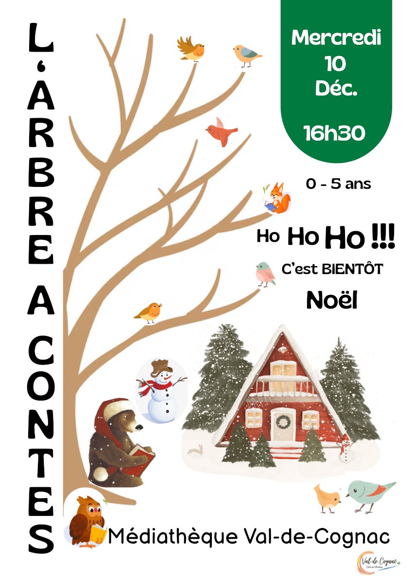 Médiathèque Municipale : Le 10/12 à 16h30 L’arbre à contes (jusqu'à 5 ans) à la médiathèque du bourg de Cherves
